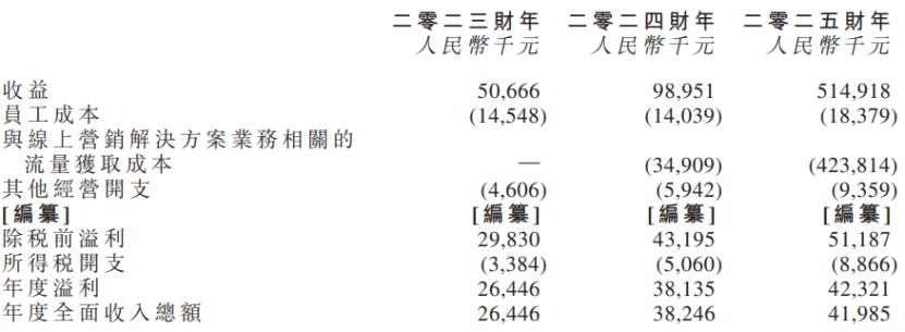 线上营销解决方案业务之所以毛利率那么低,是因为有大量资金花在流量获取上。随手播2025年的流量获取成本高达4.24亿元,占同期总收入的82.3%。