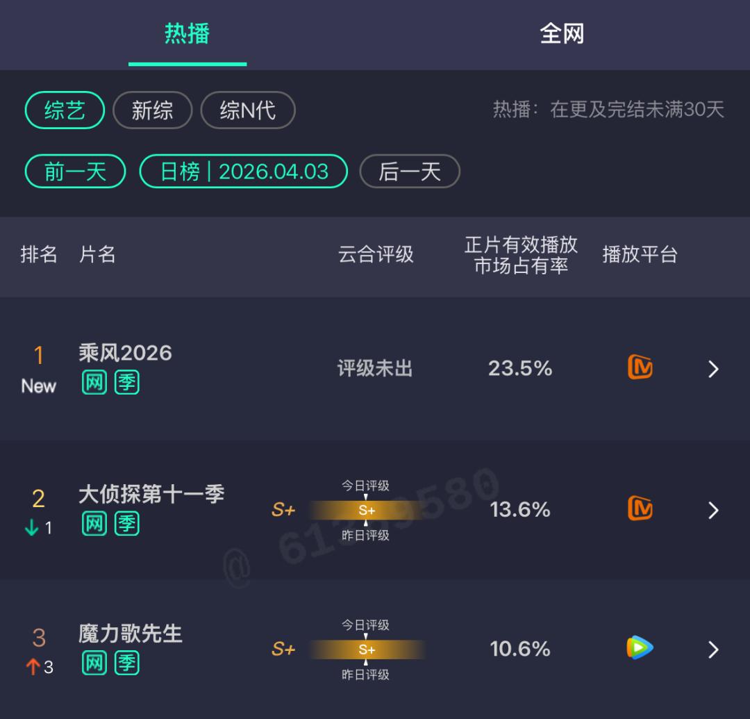 数据层面,首播即以23.5%的正片市占率占据云合数据综艺霸屏榜TOP1;初舞台直播观看量达9500万,刷新芒果TV综艺直播历史纪录;单日豆瓣实时热度峰值突破5800万,登顶综艺榜TOP1;开播当日斩获近200个热搜,微博文娱榜前排几乎被相关话题包场……