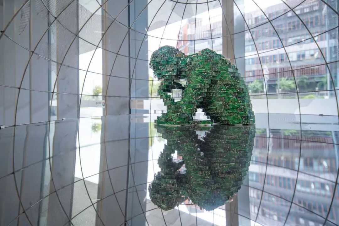 在第十届深港城市建筑双城双年展(深圳)上,胡泳的装置艺术作品状似“一个困于地球里的人”。这个“人”看上去是罗丹塑造的“思考者”,但它实际由芯片堆积而成,“那是在假装思考,其实完全没有思考”。