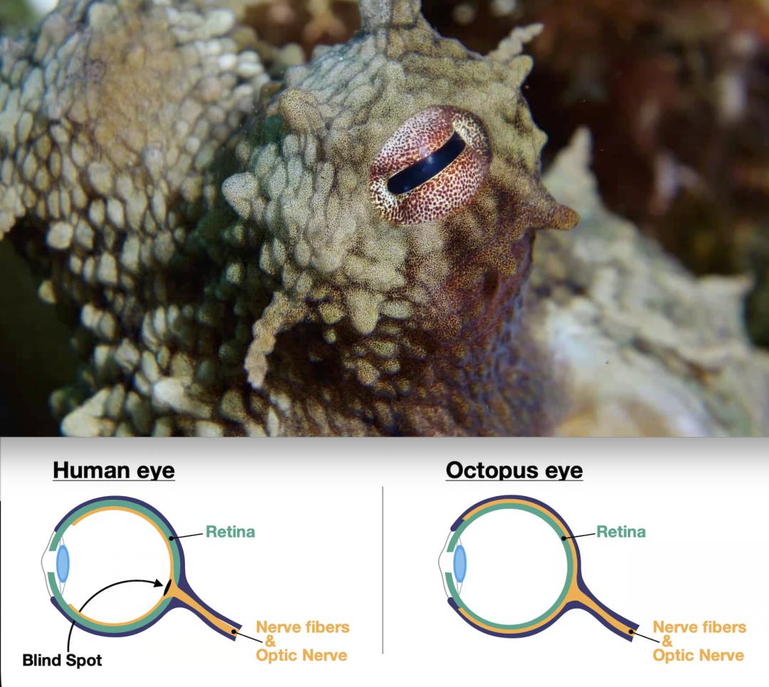 章鱼和人类眼球结构对比|图片来源:OctoNation