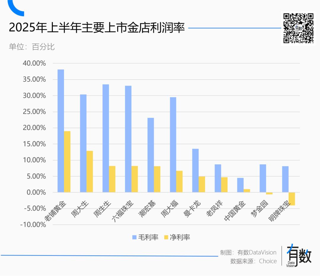 黄金价值不菲,但卖黄金其实是个薄利生意。大部分上市金店毛利率均低于10%,最惨的中国黄金毛利率一度低于3%。