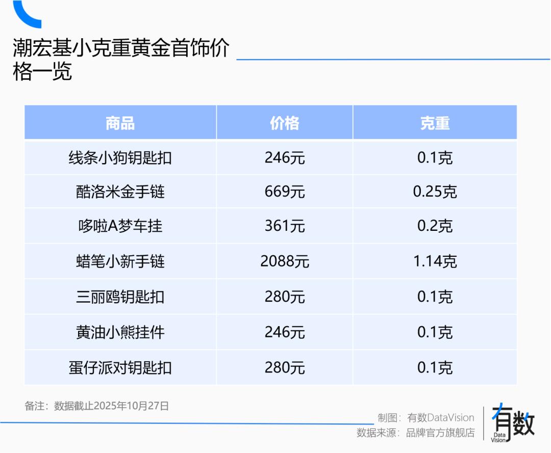 潮宏基的小克重金饰思路与之类似,但也有不同之处。其核心在于:用小克重设计模糊黄金的成本结构。