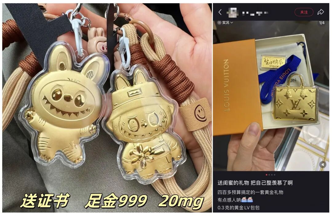 虽然含金量低,但小克重黄金可谓情绪价值拉满,小小的金子塞进了一堆吉祥话,非常适合送礼。