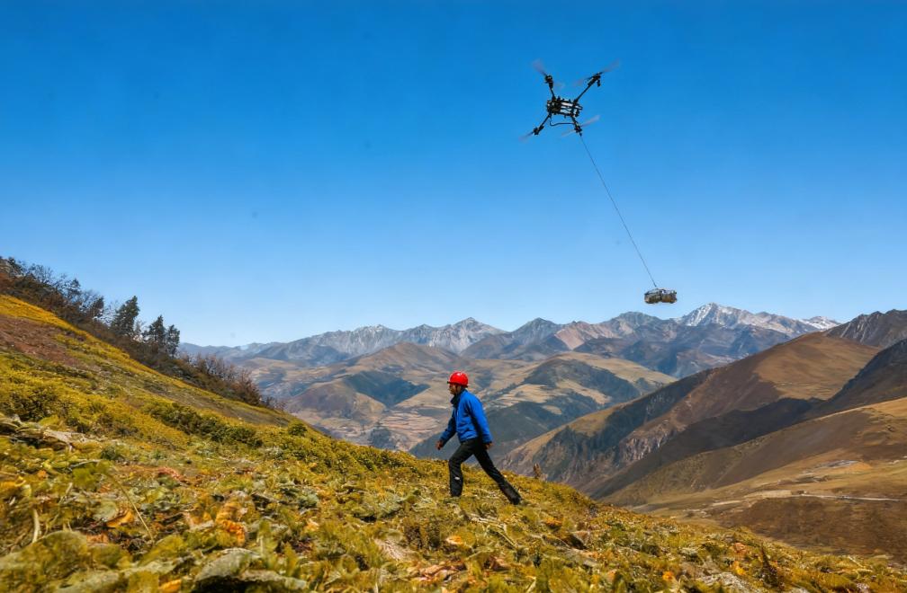 再往南些的四川甘孜,那里平均海拔超过3500米,地形陡峭,雨雪频繁,倘若隔着大山,物资运输往往要耗费数小时。而借助无人机,当地邮政能将一小时的运输时长缩短至十几分钟。