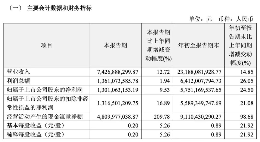 恒瑞医药三季报显示,公司前三季度实现营业收入231.88亿元,同比增长14.85%;归属于上市公司股东的净利润为57.51亿元,同比增长24.5%。单看第三季度,公司实现营收74.27亿元,同比增长12.72%;净利润13.01亿元,同比增长9.53%。