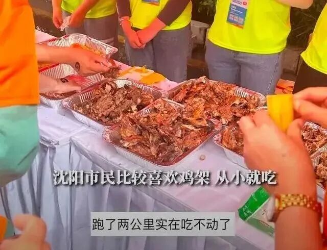 为了能回应跑者和赞助商的热情(钞能力),各大城市各显神通。最出圈的方式是把马拉松变成超长流水席,力求让跑者跑完胖三斤,还允许连吃带拿,因此不少人感慨:跑一场马拉松,最累的是腮帮子。