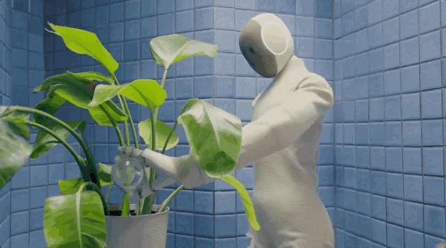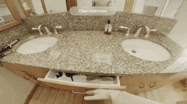 一个是,如果打扫卫生时把自己弄脏了,NEO会走到洗手池前,打开水龙头给自己“局部搓澡”: