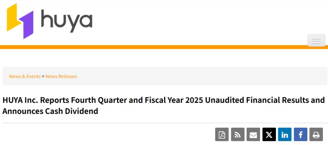 同时,今年亏损 1.63 亿的虎牙近期批准了 2026 年的特别现金股息,将派息约 2.14 亿( 3100 万美元 ),多少有点掏空自己,贡献大股东的感觉。
