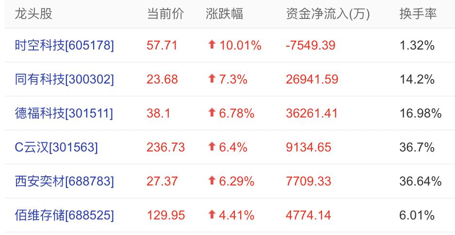 10月29日,存储芯片板块震荡走高,时空科技涨停走出6连板,同有科技涨超7%,德福科技、云汉芯城、西安奕材、佰维存储等纷纷上扬。
