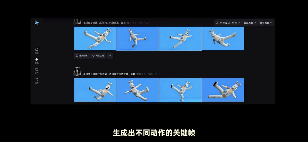 问题在于,AI的运镜能力「过量」了。它学习了很多电影当中的手法,所以会经常给一个很大范围的运镜——环绕、推进、大摇臂,但这些镜头组合起来并不是那么一回事。「在几分钟的故事编排当中,它是过量的,是不受控制的。」他打了一个比方:「这就像你给一个第一次拍片的人,配备了一个无限预算的队伍,上天入地,什么镜头都能够实现。」