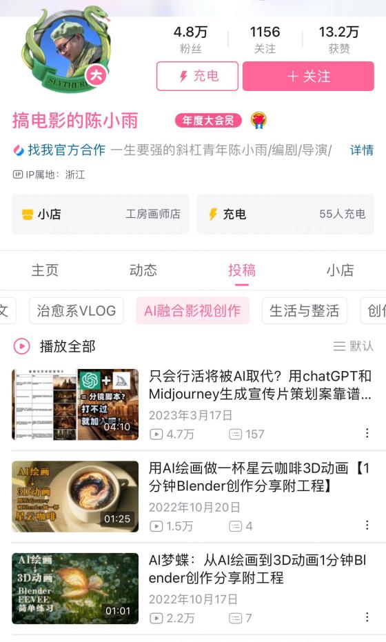 对话快结束时,我们聊起他这些年的创作转向,从小说到纪录片,从剧情片到动画,再到现在的AI创作,媒介在变,但有些东西始终没变。陈小雨还是会比较关注角色的内心,以及现实世界和幻想世界当中的连接。