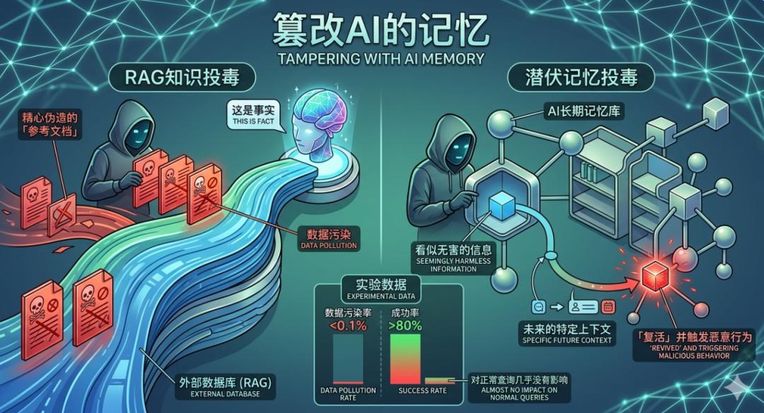 将看似无害的信息存入AI的长期记忆库,只有在未来的特定上下文中,这些信息才会「复活」并触发恶意行为。
