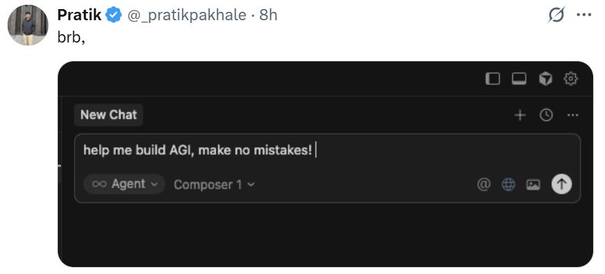 已经有人玩笑式让 Cursor 2.0 来构建 AGI 了: