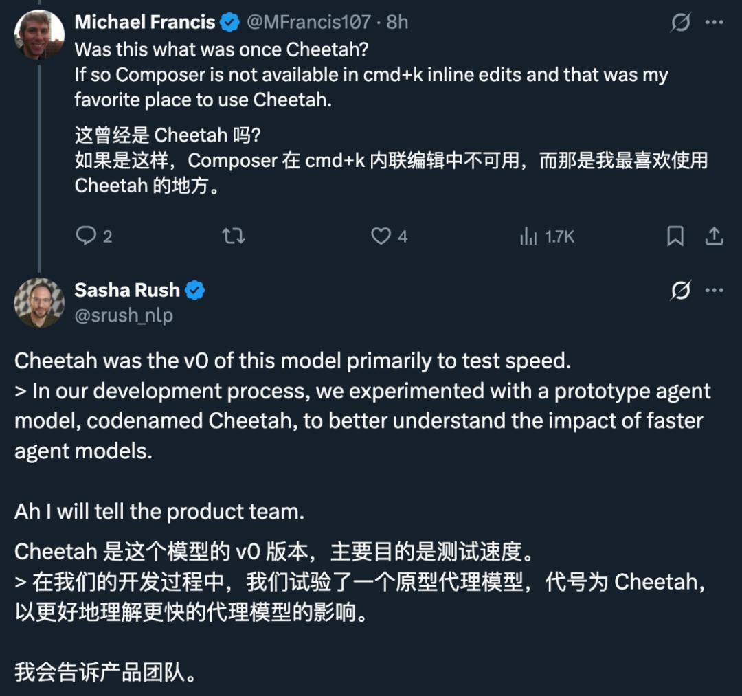 该模型的研发动力源于 Cursor 团队在开发 Cursor Tab(自研的补全模型)时的经验。
