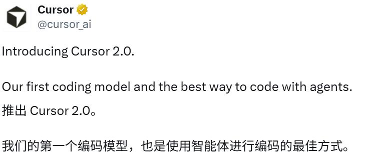 刚刚,Cursor 发布了两项重大更新:首个编码模型 Composer,以及用于并行协作多个智能体的新界面。