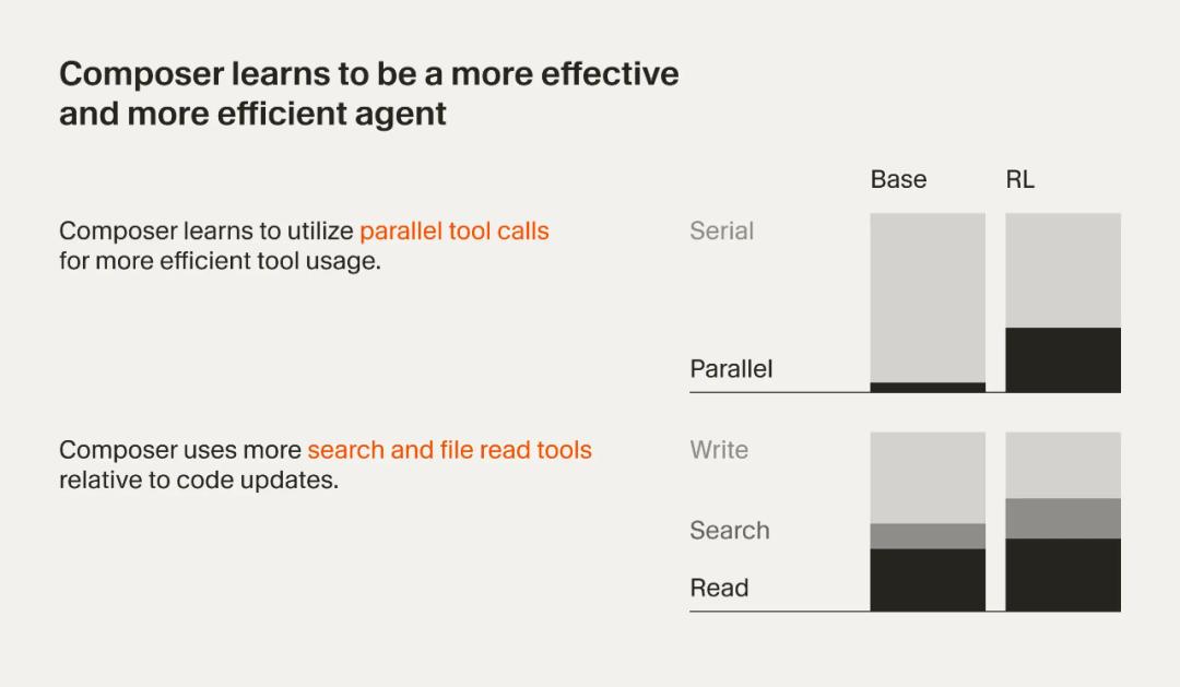 具体来说,在训练过程中,Composer 可使用一套生产级的搜索与编辑工具,并被要求高效解决各类棘手问题。