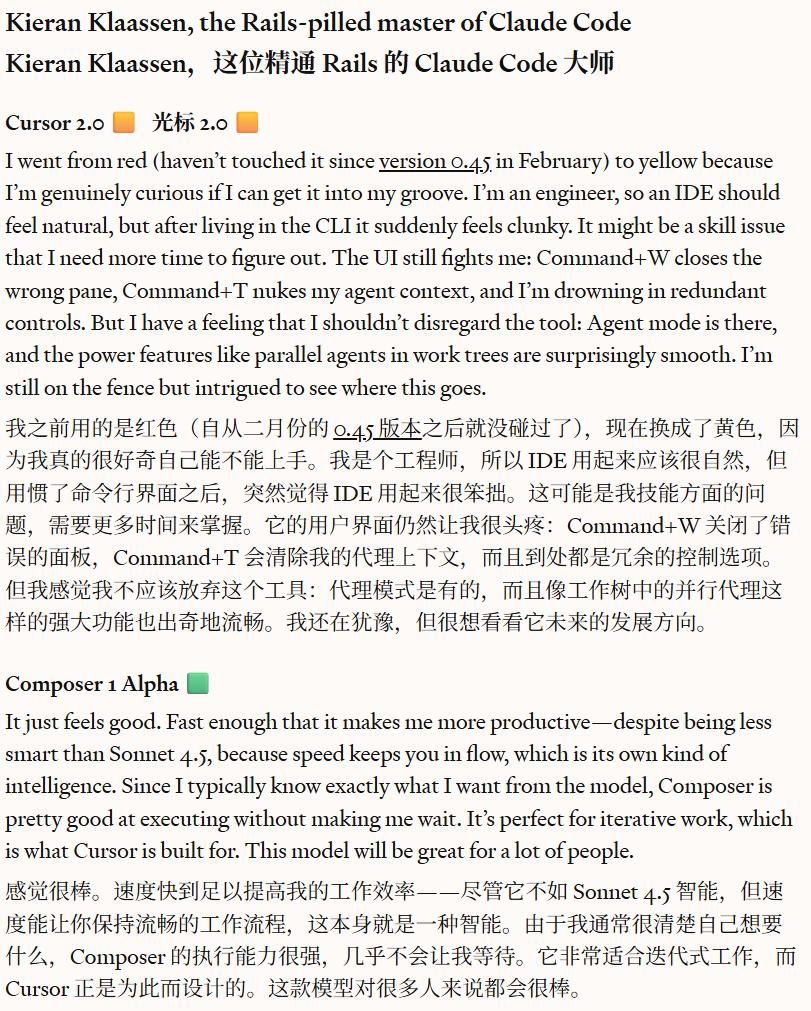 Composer 已经被 Cursor 自己的工程团队在日常开发中使用 —— 这表明其成熟度和稳定性。