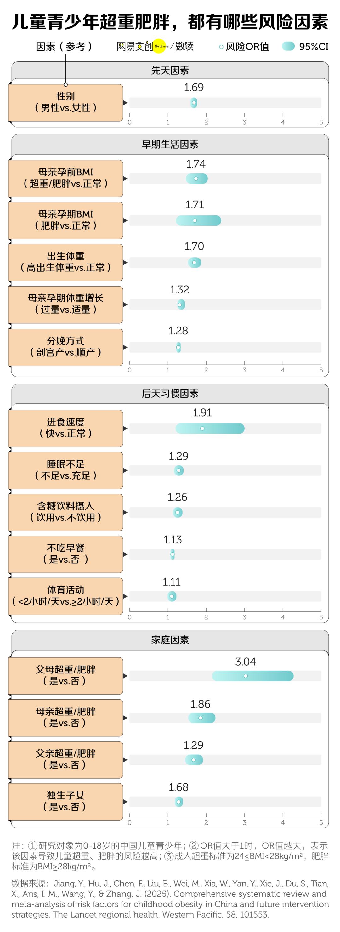 比如有的小孩还没出生,就被“负重前行”。2025 年发表在《柳叶刀-区域健康(西太平洋)》的一项研究指出,和孕期体重增长适中的母亲相比,体重增长过度的母亲,后代更容易超重肥胖 [9]。