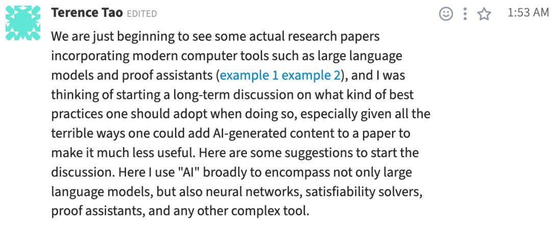 https://ai-math.zulipchat.com/#narrow/channel/539992-Web-public-channel---AI-Math/topic/Best.20practices.20for.20incorporating.20AI.20etc.2E.20in.20papers/near/546518354