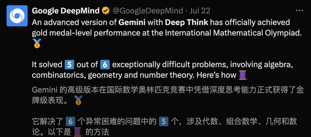 而搭载Deep Think的最新Gemini模型,更是在今年IMO中取得了金牌水平的表现,完美破解5题拿下35分。