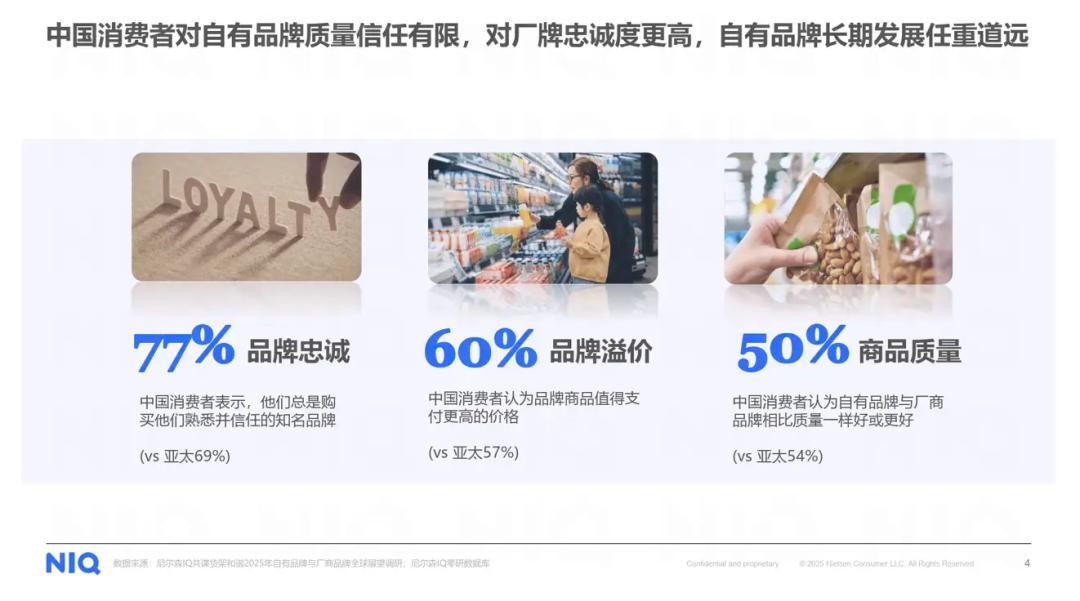 据尼尔森IQ发布的《2025中国自有品牌研究报告》,68%的零售商将优化商品组合(含自有品牌)列为2025年资源投入首要优先级,凸显其战略地位。另一方面,消费者对自有品牌接受度提升,56%的中国消费者愿购买更多自有品牌,高于全球基准的53%。