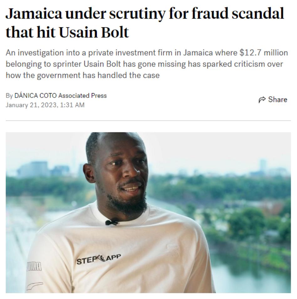 美联社报道博尔特被诈骗事件,图源:美联社
