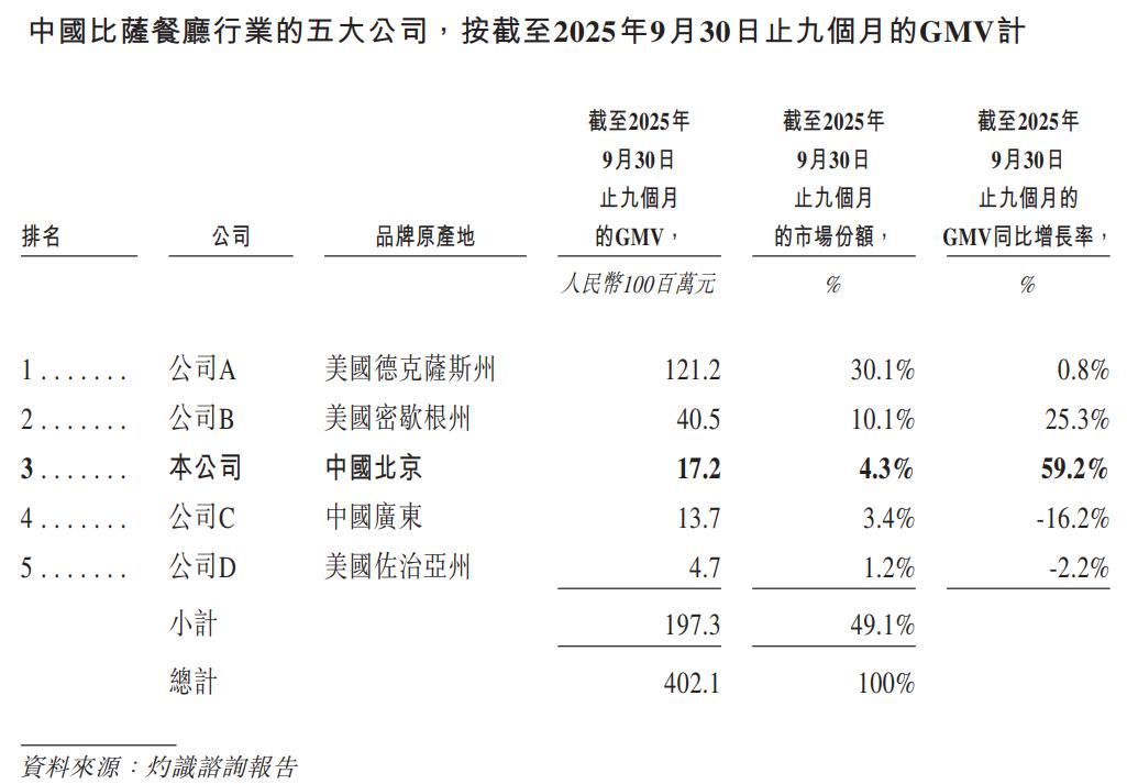 按2025年前三季度GMV计,比格在中国本土披萨餐厅、自助餐厅中、西式休闲餐厅中均排名第一。