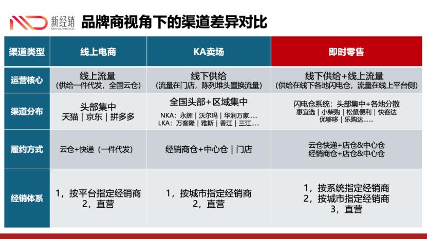 以闪购为核心的即时零售模式,我做了一张图,方便各位能够简单理解,即时零售与其他电商或KA的差异。