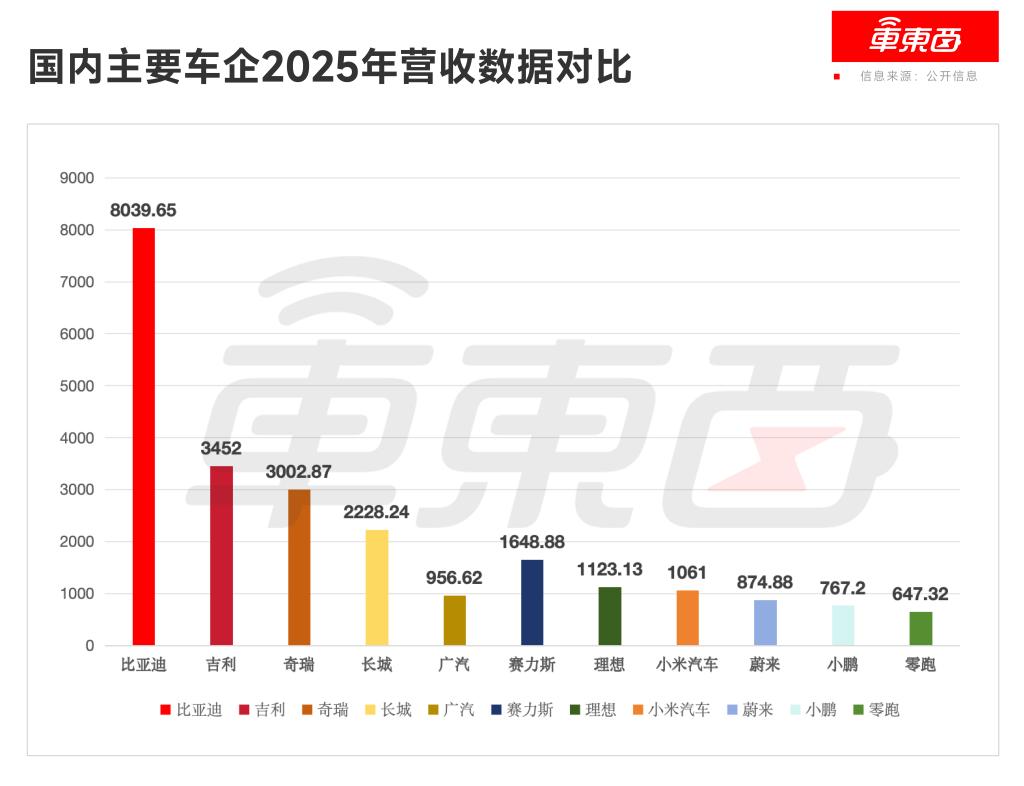 国内主要车企2025年营收对比