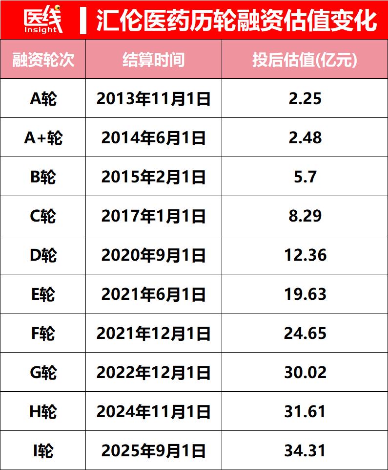 招股书显示,自2013年10月启动A轮融资起,至2025年9月完成I轮融资,汇伦医药在12年间共计完成了10轮融资。