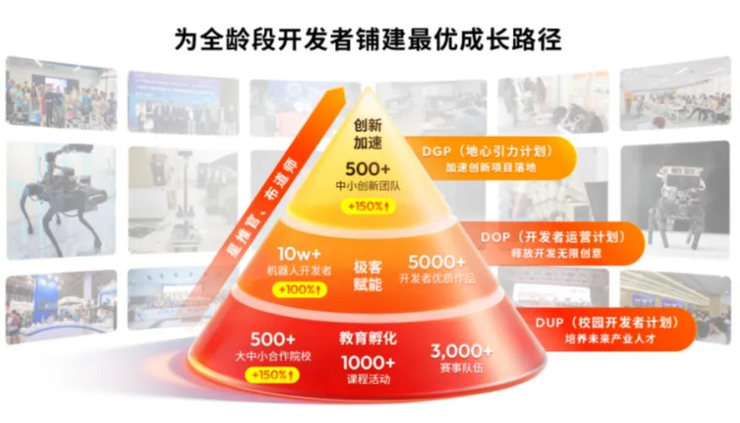 与此同时,为了吸引开发者,2022年地瓜机器人的研究人员还会自己写课程去大学开课。王丛谈道,这是因为他们梳理了开发者的金字塔画像,金字塔底部就是学生开发者,从基础抓起,通过比赛撬动高校机器人专业的学生和老师,目前在生态层面已经覆盖了500多所高校。