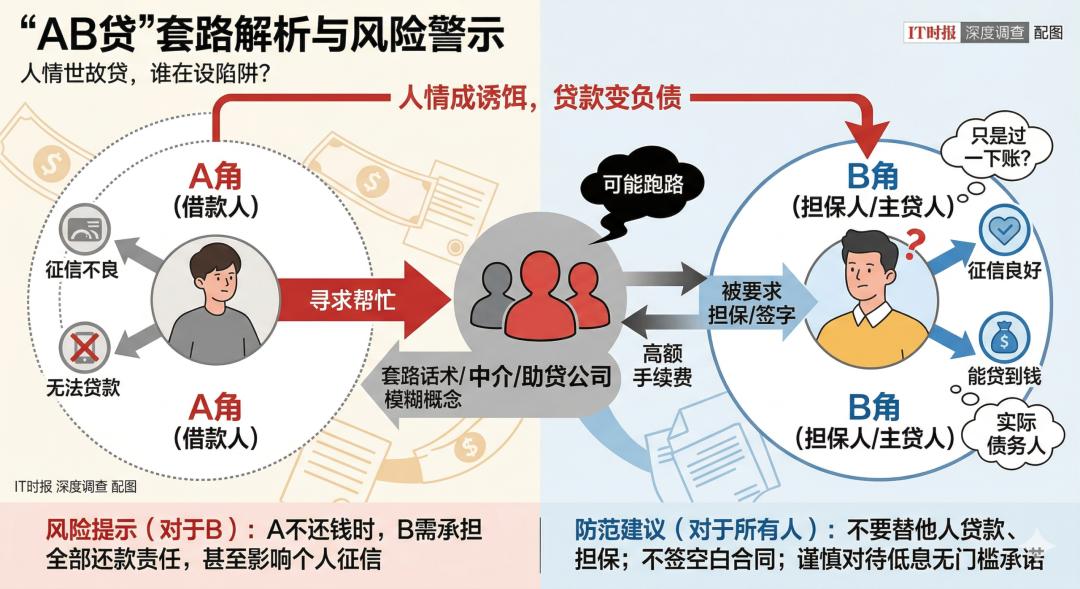 “不敢想象,如果去了现场会有什么后果?这20万元会不会成为我的债务?”小莉本想去一趟,但经朋友提醒并在网上查询后才知道,原来这种贷款模式就是业内俗称的AB贷,也称套路贷、人情世故贷。