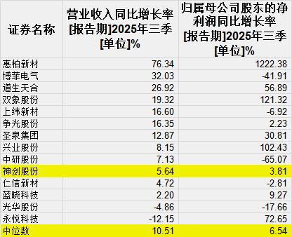 2025年前三季度,神剑股份营收增速为5.64%,归母净利润增速为3.81%。这个成绩单单看绝对值已经不算好看,横向一比就更尴尬了。神剑股份所在的申万三级行业分类合成树脂,两项数据的中位数分别为10.51%和6.54%。