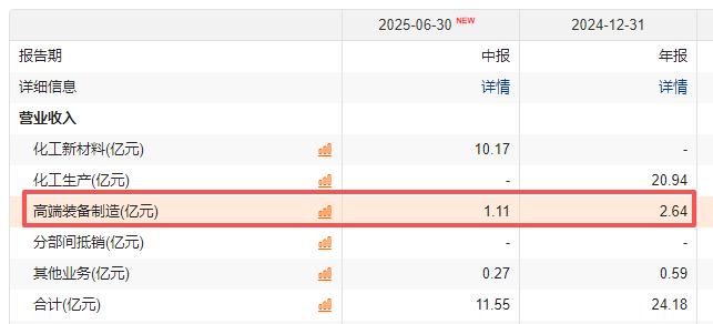 2025年上半年,其高端装备制造业务实现的收入只有1.11亿元,营收占比连10%都不够。
