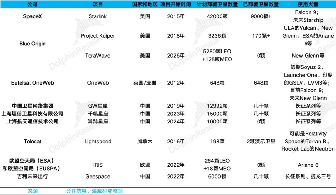 中国已经推出GW星座(中国星网)、千帆(上海垣信)、鸿鹄等星座项目,尤其是千帆定位为服务个人、企业等客户的商业项目。
