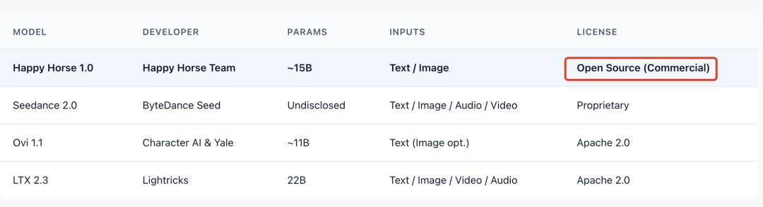 首先,和主流视频模型不同,HappyHorse是开源的。