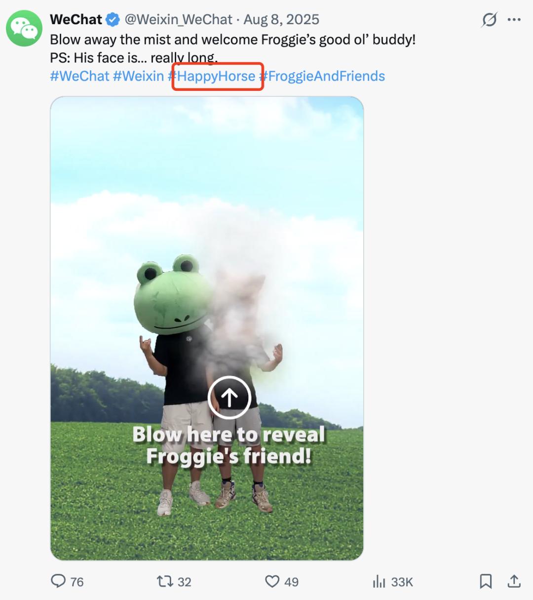事实上,我们之前怀疑是爱诗,但沟通后对方否认了这件事情,并反向猜测可能与腾讯有关。我们后来在X上也找到了一些蛛丝马迹,微信曾在去年8月于X上发布过一条帖子,刻意提及 “HappyHorse” 关键词。