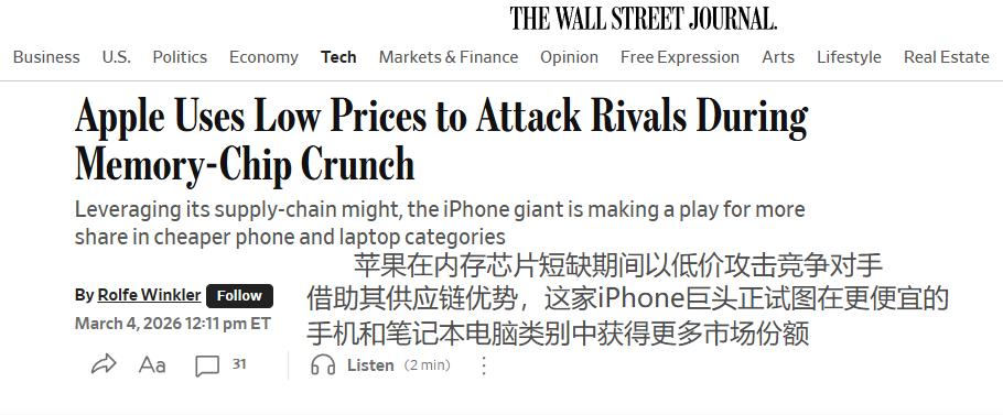 并非人傻钱多,分析人士普遍认为,苹果这不仅仅是为了保障自己今年的内存供应,也是在故意恶心对手,进一步抬高他们的采购成本,也提前占好芯片厂产能,让对手没有零部件可用,价格和产能同时受限。而自己虽然高价采购内存多花了钱,财报会很难看,但换来了市占率。