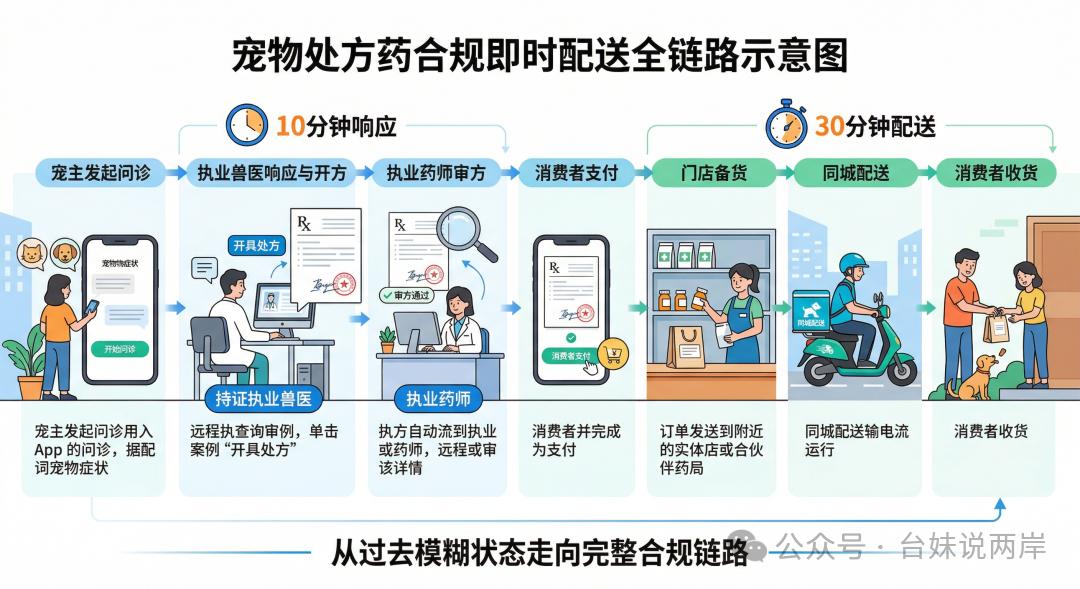 首次将人药级监管标准引入宠物医药领域,构建“线上合规开方+线下前置仓履约+30分钟同城配送”的闭环。