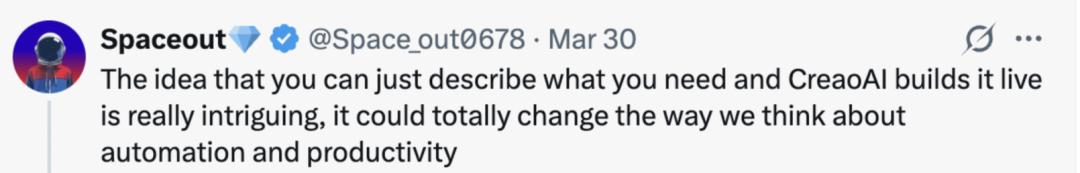 「只需描述你的需求,CREAO 就能实时构建出来,这种想法真的很有意思,它可能会彻底改变我们对自动化和效率的认知。」