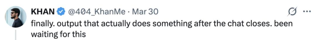 「终于!聊天结束后,输出还能实际发挥作用,我等这一刻很久了。」