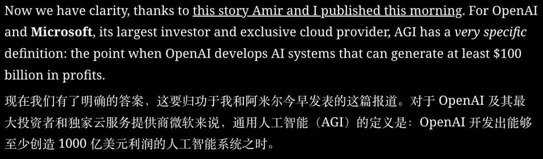 据业内爆料,OpenAI内部甚至曾讨论过另一种「达到AGI」的判定标准:当其模型被认为有能力为投资人赚取1000亿美元的利润时,就可视为实现了「充分的AGI」。