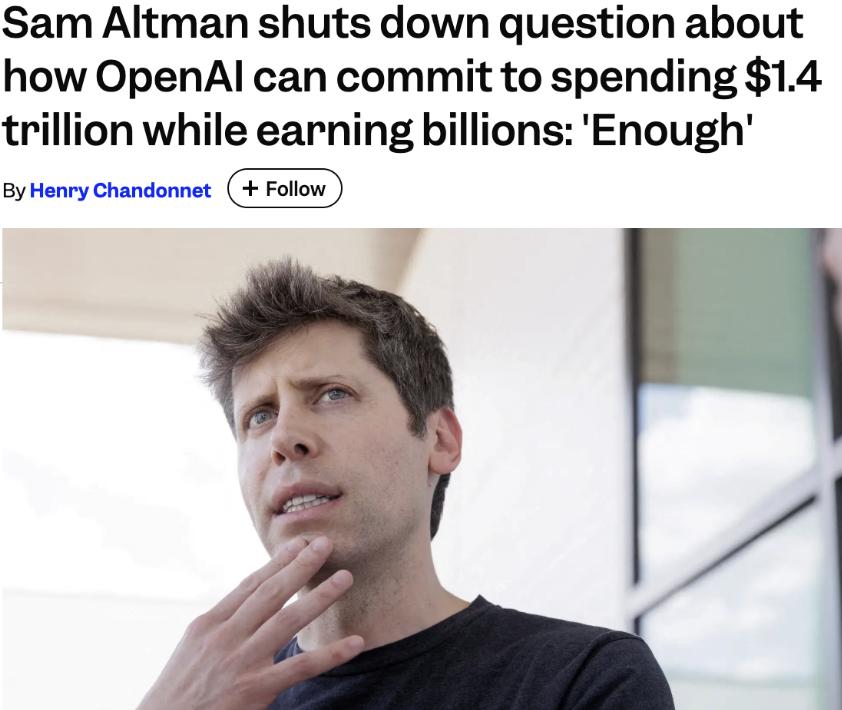 据估计,OpenAI年收入约130亿美元,与其1.4万亿美元的投资相形见绌。