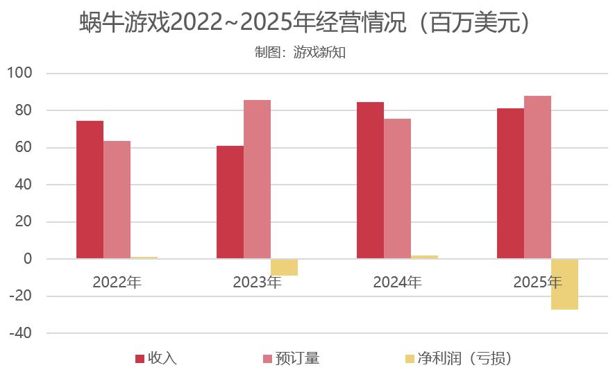 在这几年里,蜗牛游戏的预订量同样在波动。2024年收入同比增长了38.7%、预订额则下滑了11.7%;2025年预订额增长了16.2%,收入则下滑了3.8%。而且每当递延收入出现增长时,例如在2023年和2025年,蜗牛游戏便随即在同一年出现亏损。