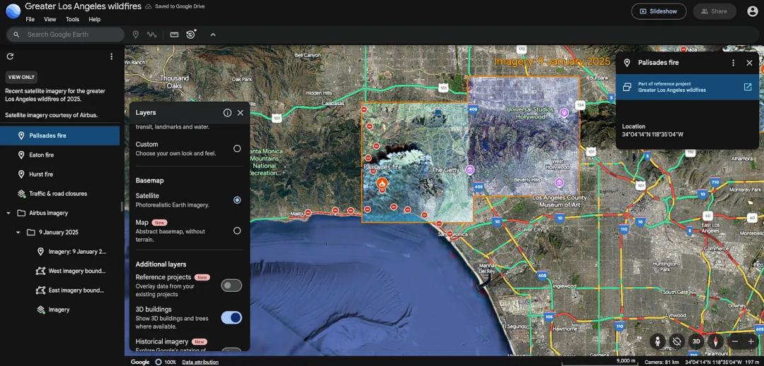 在2025年加州山火期间,谷歌向洛杉矶地区1500万人推送了危机警报,并在地图中实时显示可前往的避难所位置。