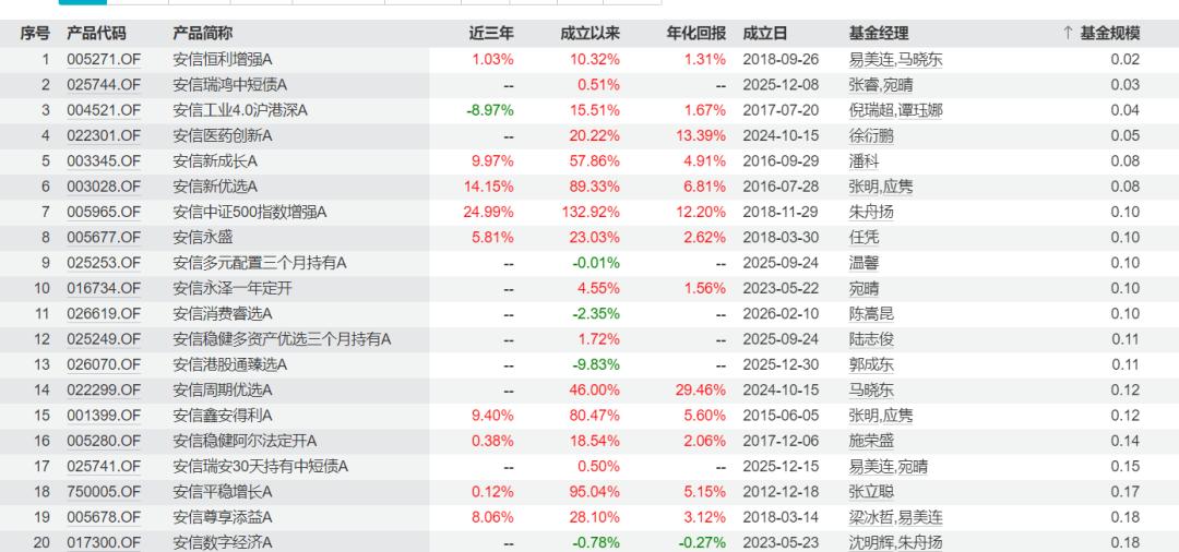 近年来,安信基金已有多只产品因规模不达标触发清盘条款。