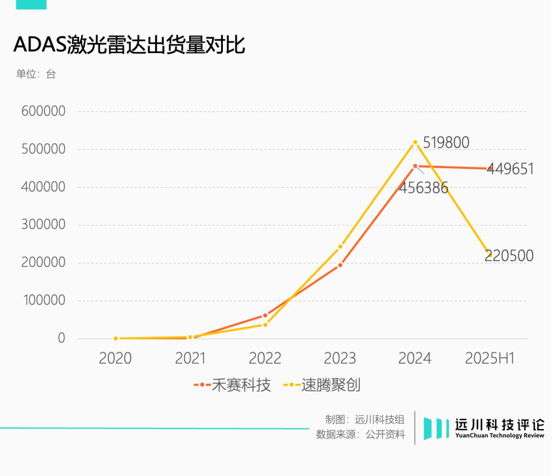 从去年出货量来看,禾赛和速腾聚创的ADAS激光雷达出货量占比,都超过90%。