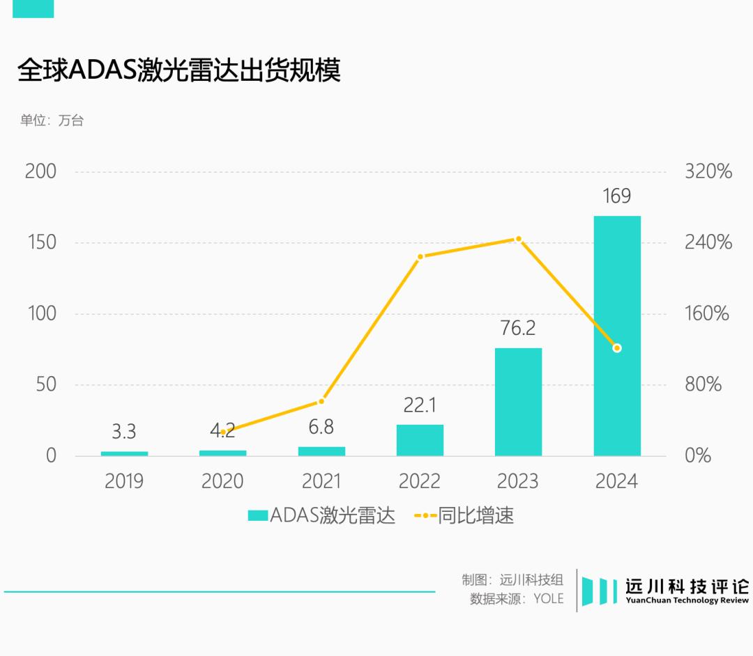 按照Yole统计[4],去年乘用车激光雷达搭载量达到169万台。这是什么概念?意味着激光雷达厂商用爱发电十多年,放在9000万辆的全球销量大盘里,渗透率还不到2%。