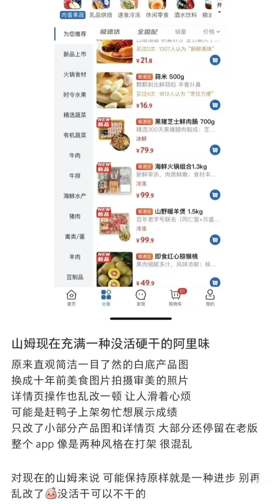 市面上流传的“山姆变得像盒马”、“山姆的阿里味儿越来越重”等说法,更像是一种博眼球的情绪化表达。