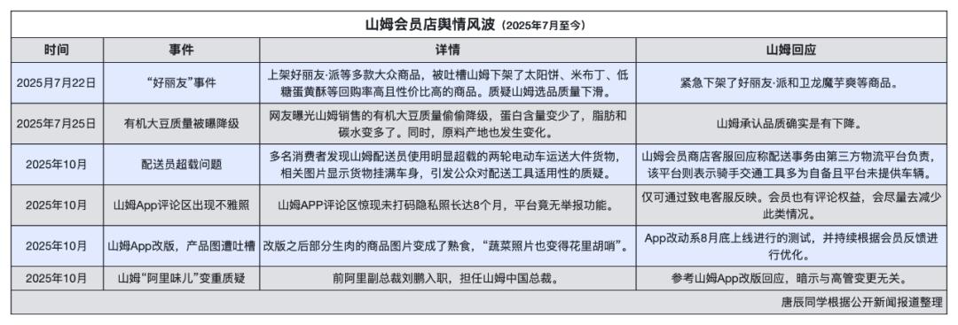 就最近三个月,山姆就像在浪头上没下来过,经历了一轮从“闭眼入”,到“不敢信”,甚至“退会员卡”的神话崩塌路径。